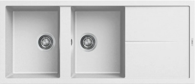 Integrovaná oblast pro příslušenství v odkapávači, vybavená předvrtanými otvory, které vám umožňují instalovat doplňky: excentrické ovládání odpadu, dřezovou baterii s vytahovací sprchou a dávkovač saponátu.