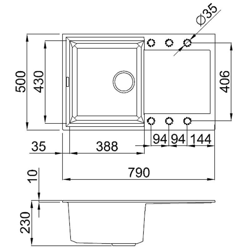 | Materiál | Granitek |