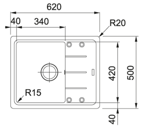 Spodní skříňka 450.00 mm Ventil 3 1/2'' sítkový Délka 620.00 mm Šířka 500.00 mm Rozměr dřezu 340.00 mm Rozměr dřezu 420.00 mm Hloubka dřezu 200.00 mm Výřez 600.00 mm Výřez 480 ...Více informací