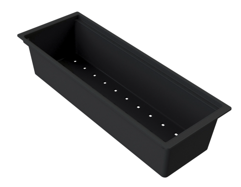 Polykarbonátová vanička ELLECI AVP034BK Vhodné pro dřezy Best 360 a Best 130 Rozměr: 380x138x84 mm Barva: černá BARVA: ČERNÁ ROZMĚR: 380 X 138 X 84 MM