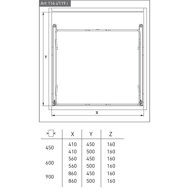 Plnovýsuvný koš s tlumeným dovřením SIGE ART119i (ART-119i) pro korpus šíře 450mm. Šířka korpusu 450mm Výsuv GRASS