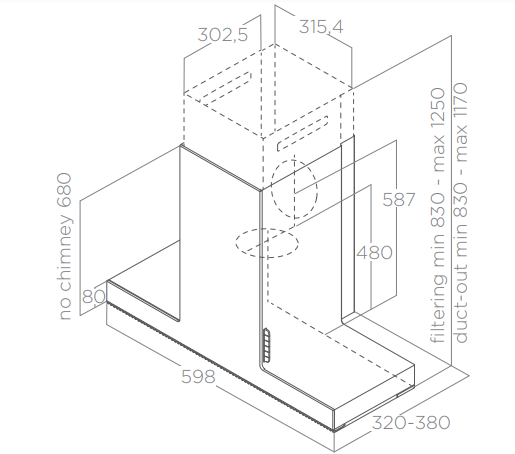 Odsavač par (digestoř) ELICA HAIKU je možné doplnit o montážní přípravek, který umožní plynule nastavit hloubku odsavače od 32 cm do 38 cm.