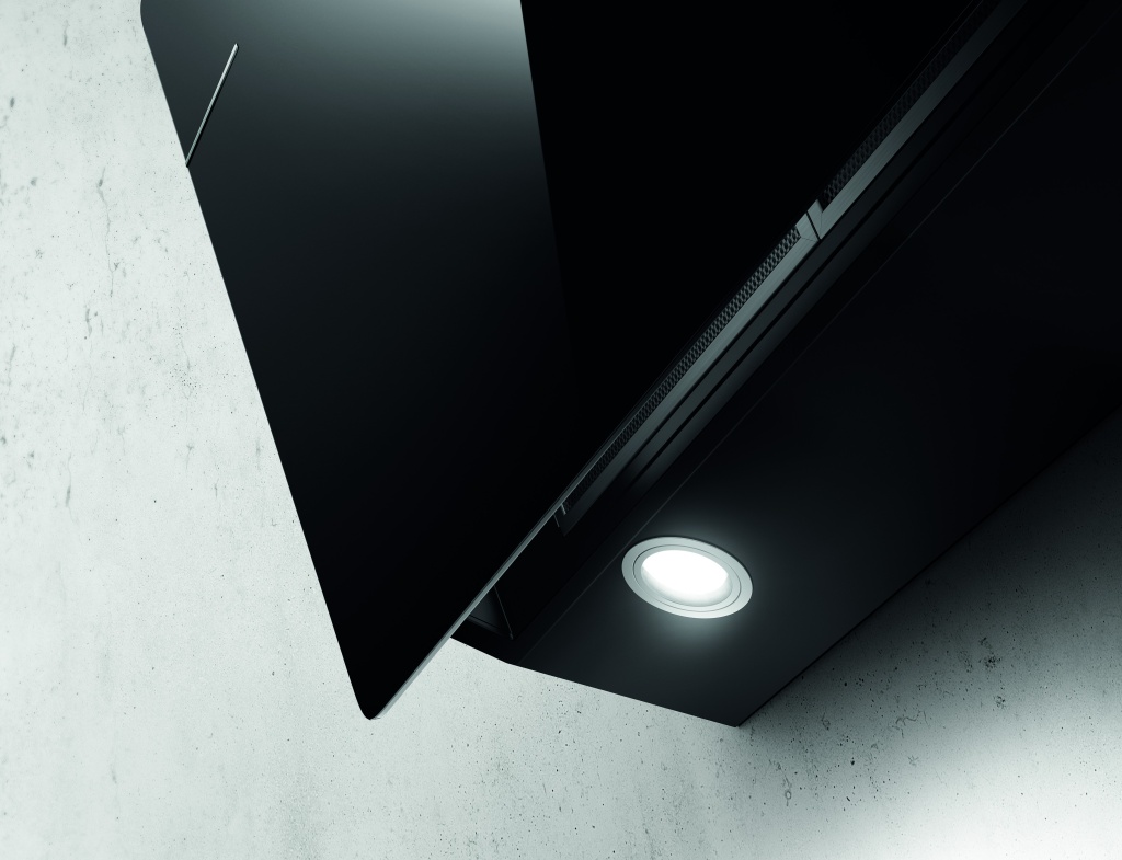 ELICA LESSENZA elegantní odsavač par (digestoř) v kombinaci černého skla a nestárnoucího nerezu.