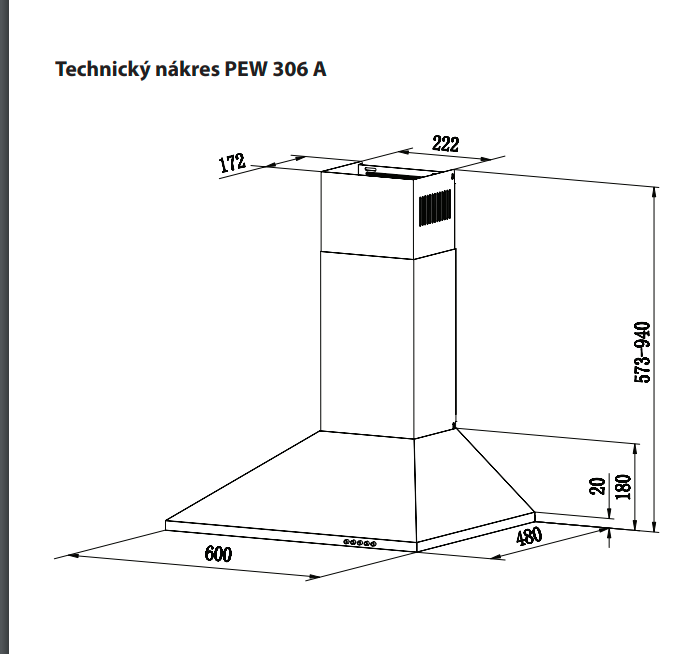 Komínový odsavač par Vlastnosti: Šíře 60 cm Výkon min./max./int.: 188/305 m3/hod. 3 stupně výkonu Tlačítkové ovládání LED osvětlení 2 W Hlučnost 56/62 dB Třída energetické úči ...Více informací