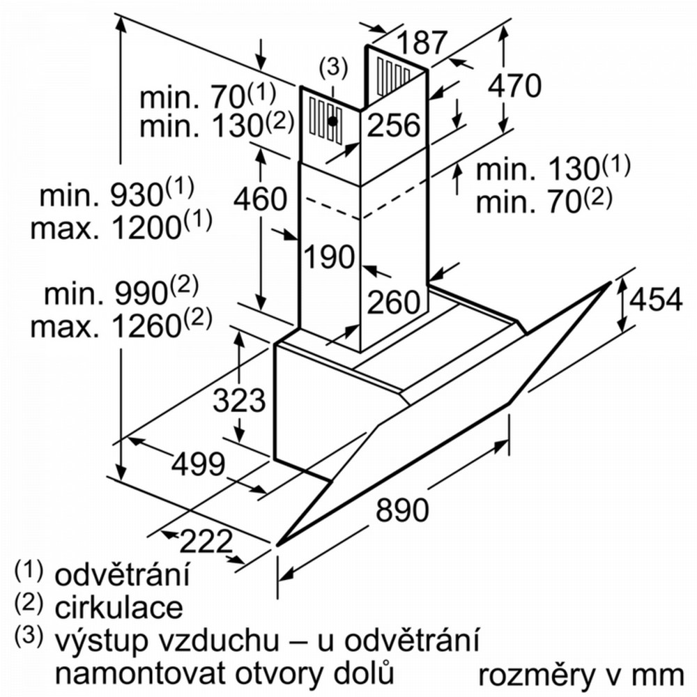 rozměry spotřebiče pro odvětrávání (v x š x h): 930-1200 x 890 x 499 mm