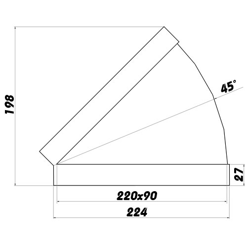 Plastové horizontální koleno 45° se využívá k napojení ventilačního potrubí 220x90 mm nebo komponentů.