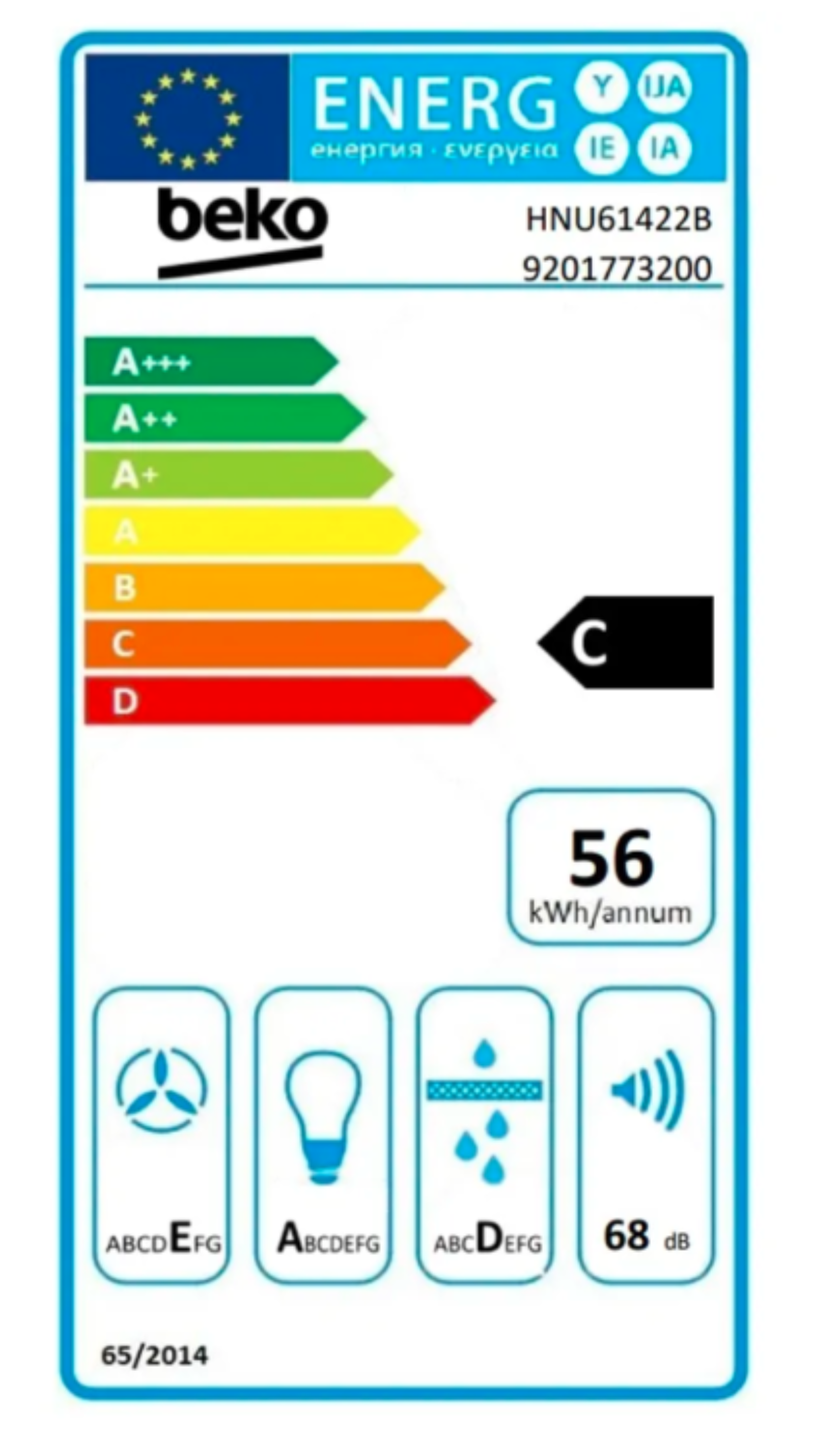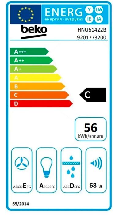 Průměrná roční spotřeba energie 56,2 kWh Dynamická účinnost kapaliny třída E