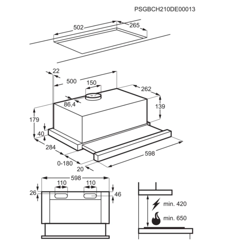 Rozměry V x Š x H (mm): 179 x 598 x 284