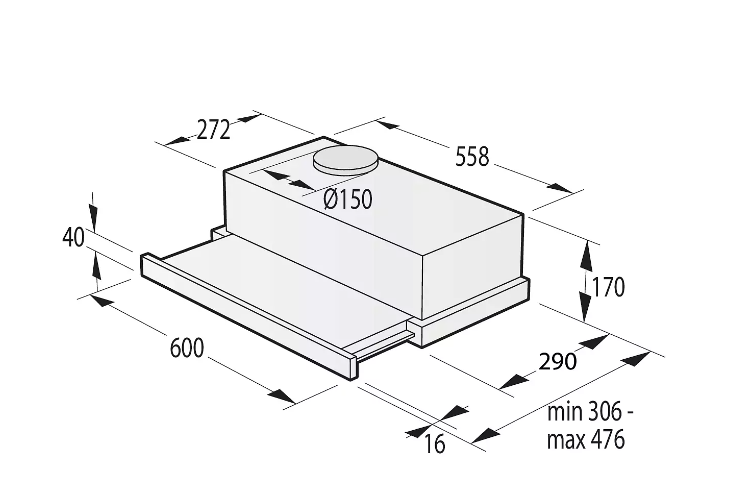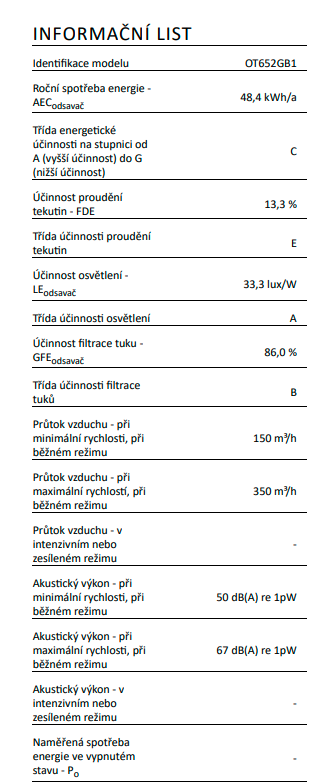 Vestavný výsuvný odsavač par MORA OT 652 GB1 v černém provedení s výkonem 350 m3/h spolehlivě odstraní z kuchyně všechny nežádoucí pachy. Díky posuvnému čelu odsavač dokonale splyne s kuchyňskou linkou, protože motor s horním odtahem je skrytý uvnitř skříňky. Odsavač má tlačítkové 3 rychlostní ovládání umístěné pod lištou a LED osvětlení s výkonem 2,1 W, které perfektně osvítí varnou plochu a vy tak budete dokonale vidět do hrnců či pánví na připravovaný pokrm. Je opatřen omyvatelnými hliníkovými filtry proti mastnotě s polyuretanovou pěnou, které lze mýt v myčce. Při dokoupení uhlíkových filtrů lze odsavač provozovat i na recirkulaci.