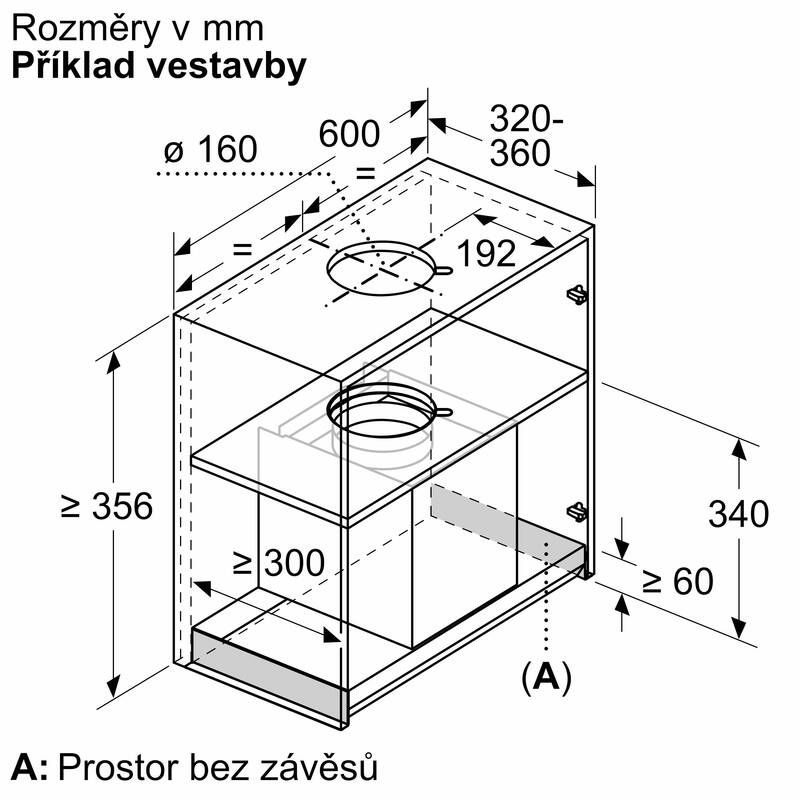 Odsavač par • Typ: do kuchyňské skříňky • Energetická třída: B • Výkon odtahu: 582 m³/h • Maximální hlučnost: 65 dB • Recirkulace • Odsávání do komína • Ovládání: elektronické – tlačítkové • Počet rychlostních stupňů: 3 • Počet motorů: 1 • Komunikační displej: ne • Horní odtah • Bez odtahu • Příkon: 200 W • Průměr odtahového hrdla: 150 mm • Typ osvětlení: LED • Rozšířená záruka: - • V × Š × H: 6 × 60 × 29,8 cm