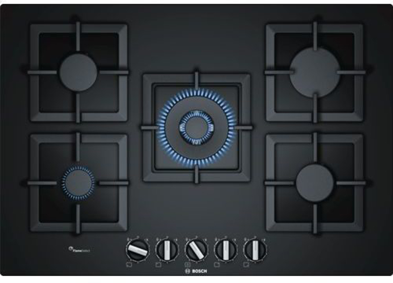 Plynová varná deska BOSCH PPQ7A6B20 na tvrzeném skle s fukncí FlameSelect: zaručí perfektní výsledky vaření díky preciznímu nastavení stupně výkonu plynového hořáku v rozsahu 1 až 9 stupňů. BOSCH PPQ7A6B20 má integrované zapalování v ovládacím knoflíku.