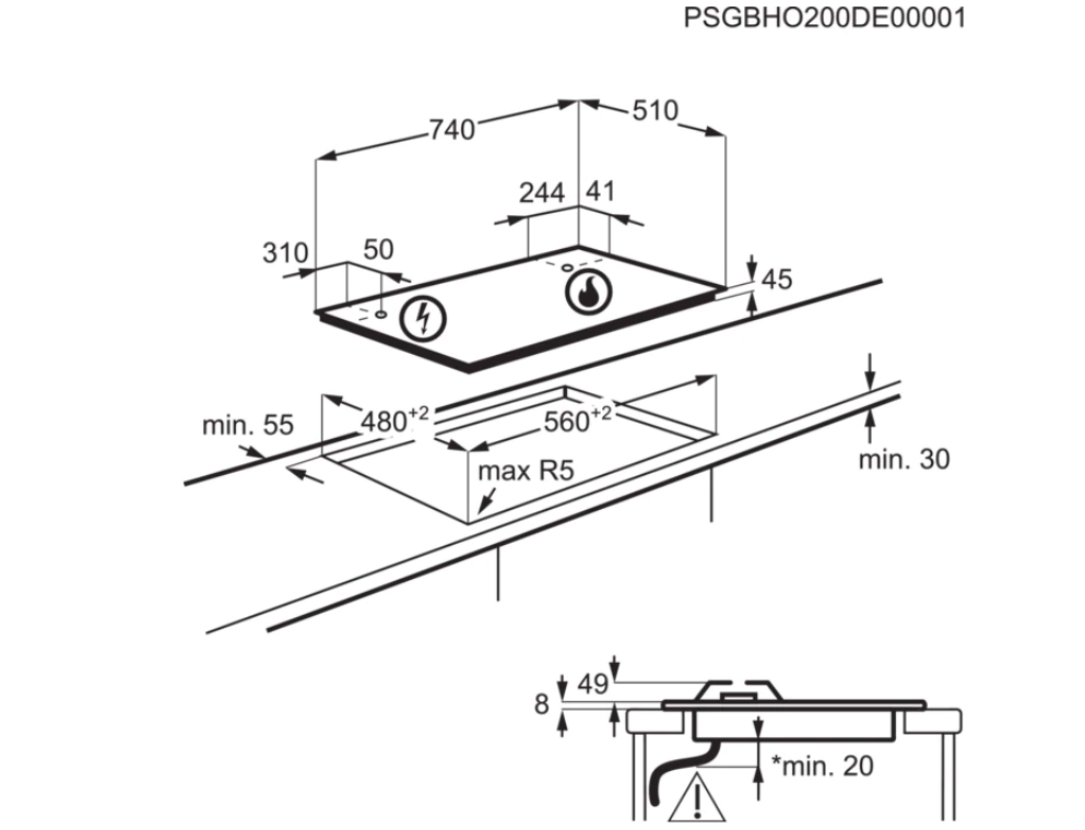 Šířka pro vestavbu cm 56
