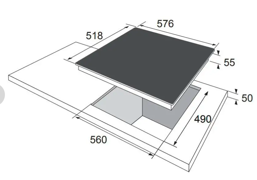 Rozměry pro vestavbu 4,8 × 55 × 49 cm (v × š × h)