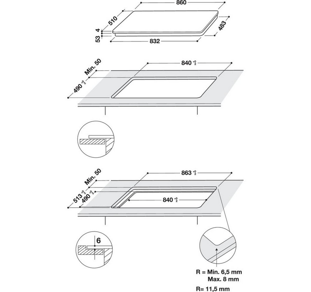 Rozměry otvoru pro zabudování (vxšxh) 30-60x840-842x490 mm