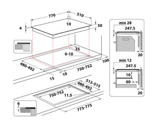Rozměry otvoru pro zabudování (vxšxh) 30-60x750-752x480 mm