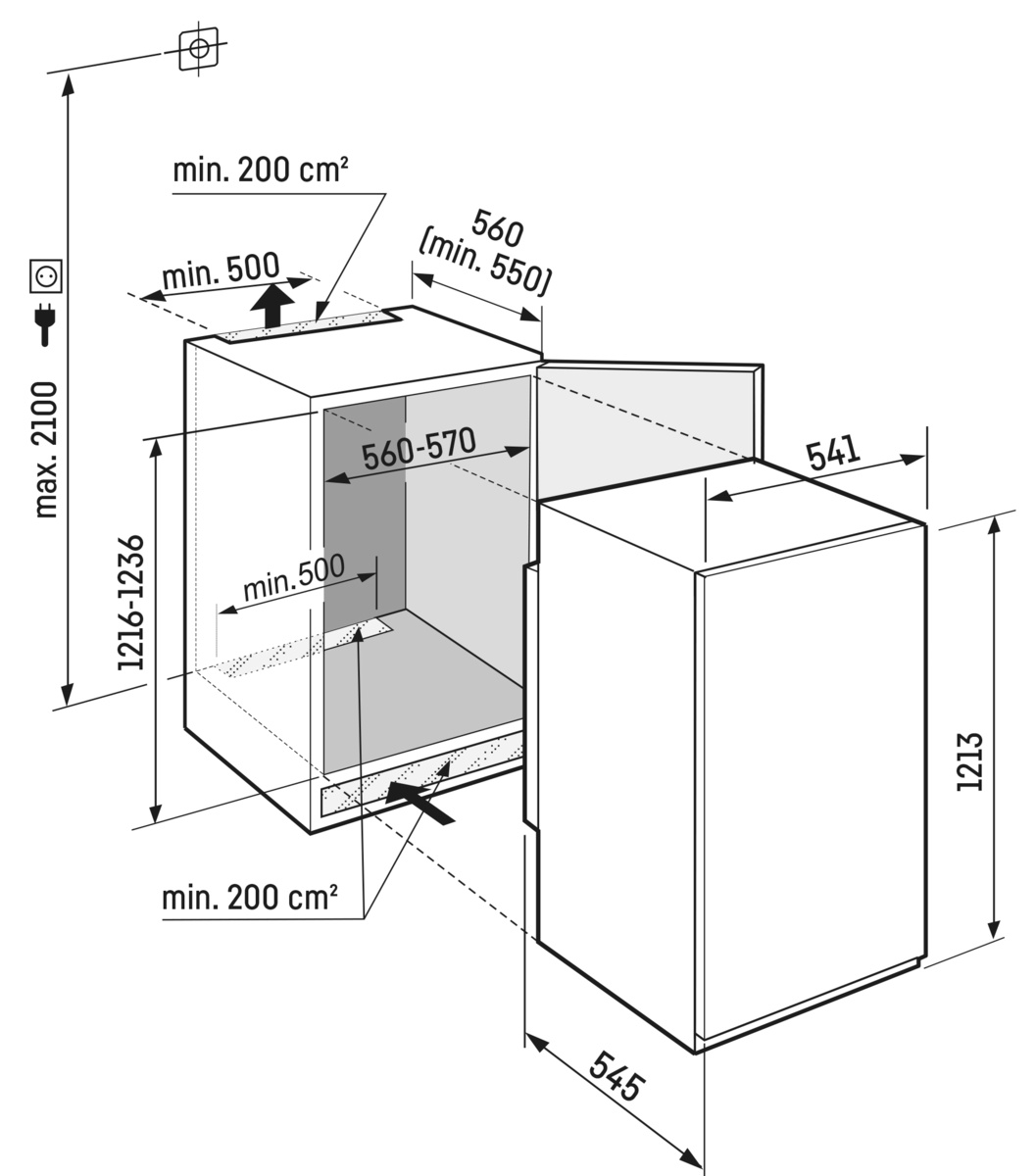Rozměry výklenku výška/šířka/hloubka        122 - 123,6 / 56 - 57 / 55,0 cm