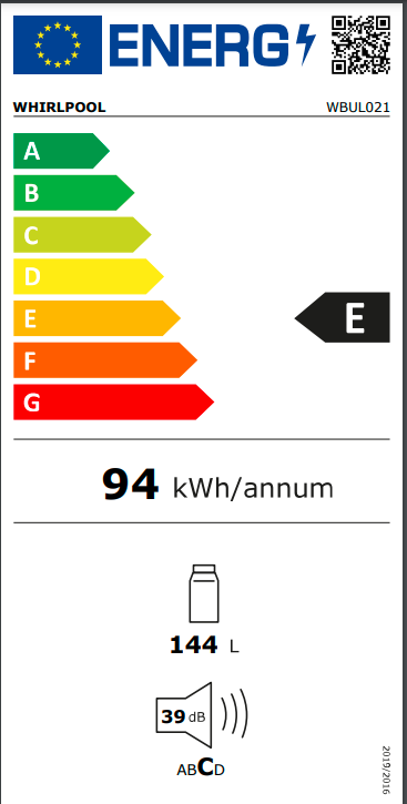 Díky energetické třídě E vám tento spotřebič Whirlpool umožní využívat skvělý výkon i nižší spotřebu energie.