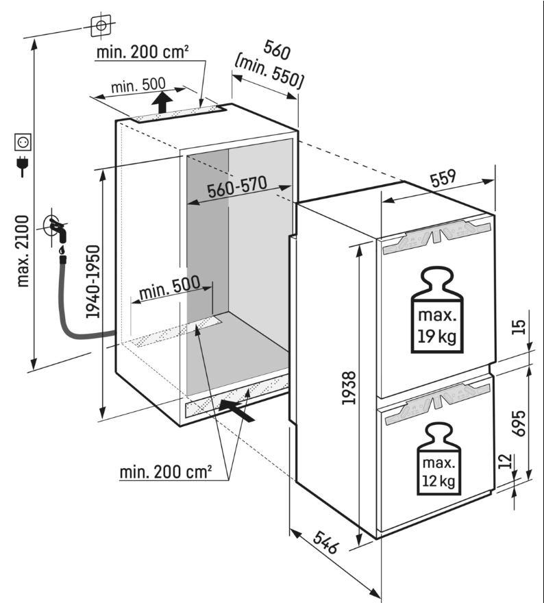 Rozměry výklenku výška/šířka/hloubka 194 - 195 / 56 - 57 / 55,0 cm