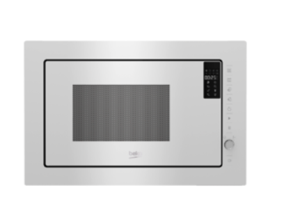 Bílá vestavná mikrovlnka připraví pomocí grilu křupavou kůrku a zapeče jídlo, aniž byste museli zapnout troubu. Automatické programy a funkce vaření ve více krocích připraví jídlo jednoduše z mrazáku rovnou na stůl podle typu a váhy jídla.