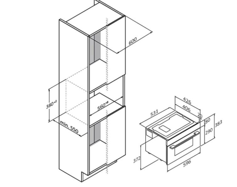 Hloubka pro vestavbu cm 55