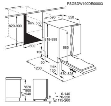 Vestavné rozměry V(min/max)xŠxH (mm): 820/900 x 600 x 570