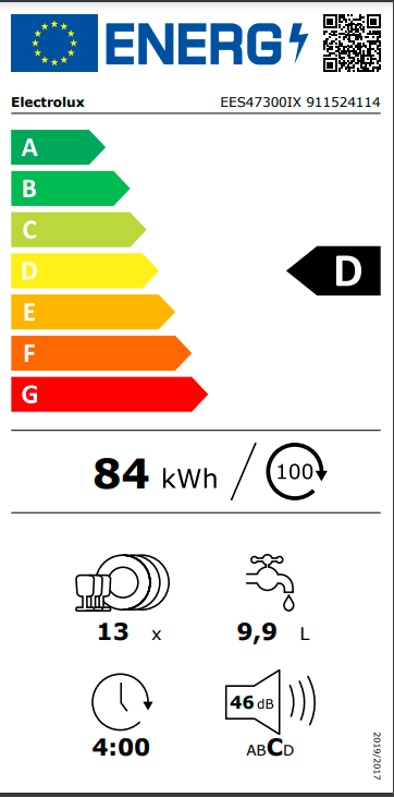 Kapacita mytí: 13: Podle normy IEC pro sadu nádobí. Jednou sadou nádobí je podle této normy: talíř, hluboký talíř, dezertní talíř, sklenice, čajový šálek s podšálkem, nůž, vidlička, polévková lžíce, dezertní lžíce a lžička.