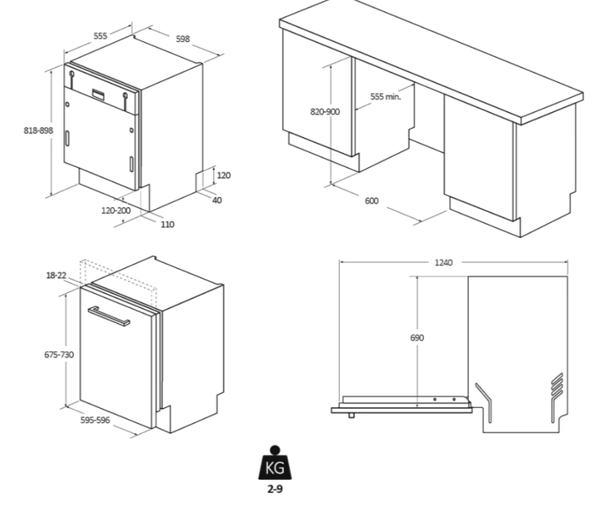 Hloubka pro vestavbu cm 55.5