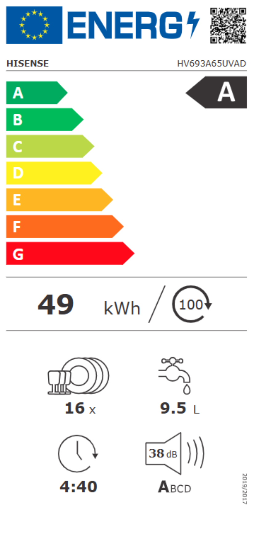 Díky použití prémiových izolačních materiálů a dokonale optimalizovaného mycího cyklu dosahuje myčka mimořádně tichého provozu – pouhých 38 dB během mytí. S nočním programem lze hlučnost ještě snížit na pouhých 36 dB. Myčka je tak tichá, že ji během provozu téměř neuslyšíte.
