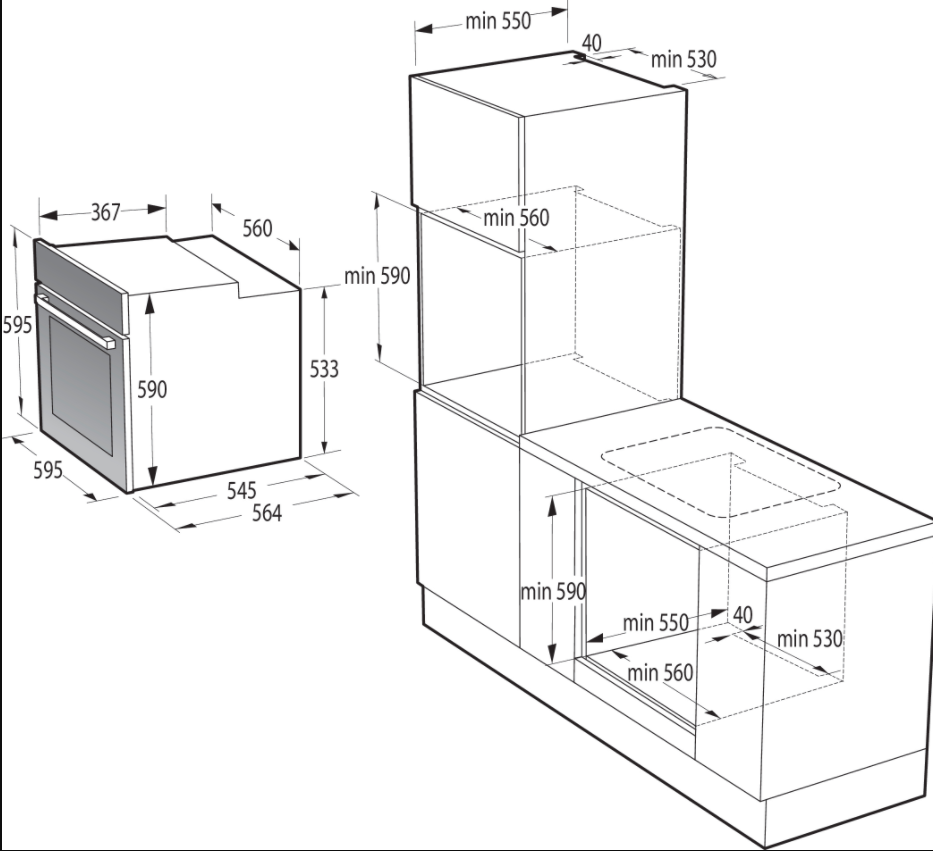 | Výška pro vestavbu cm | 59 |
