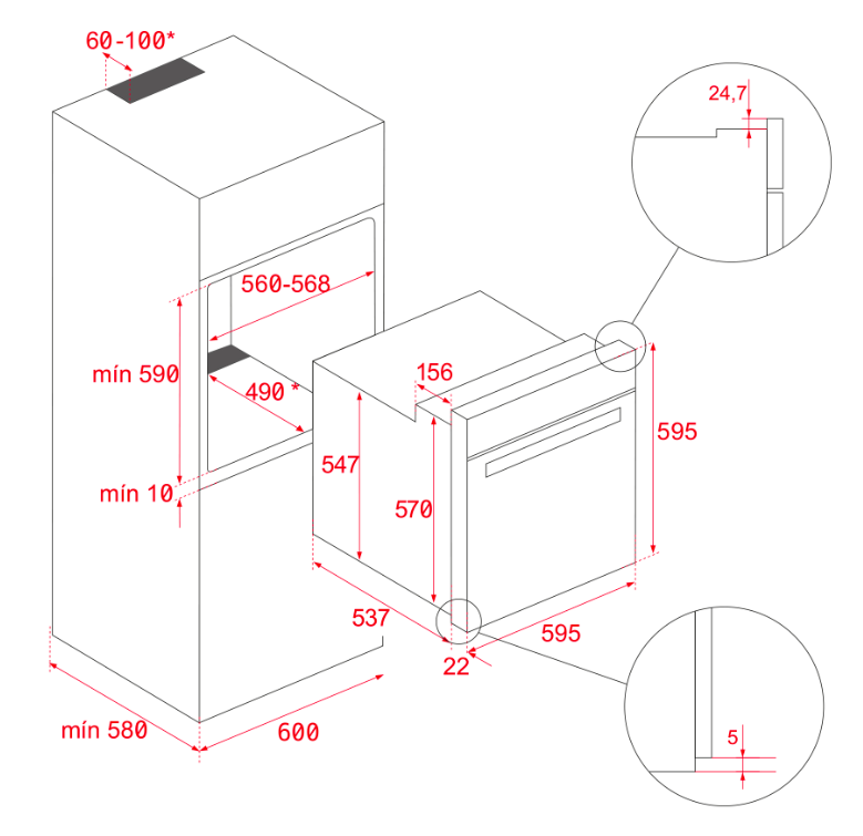 | Výška pro vestavbu cm | 59 |